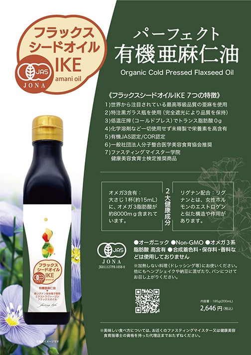 有機亜麻仁油 IKE (イケ) オーガニック Non-GMO フラックスシードオイル