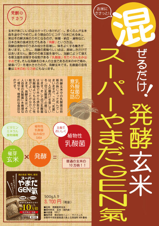 スーパやまだGEN氣は独自の発酵技術を使うことで玄米の中に眠っているおいしさを引き出し、さらに乳酸菌を増量させることにも成功しました。